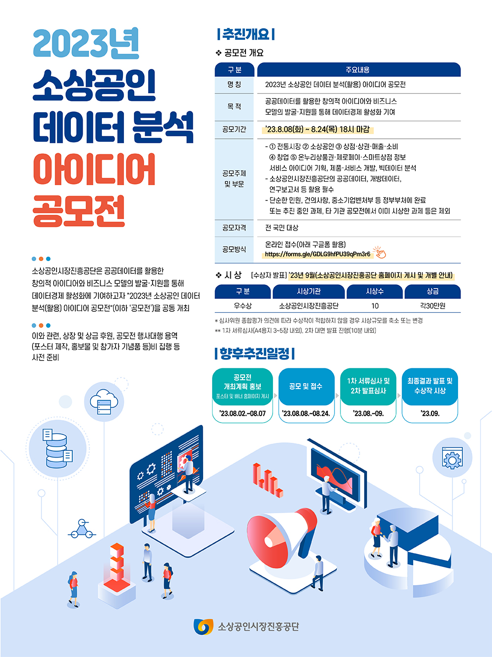 ❍ 응모자격 : 전국민 누구나 지역, 연령, 자격 등 제한 없음 ❍ 접수기간 : 2023. 8. 8.(화) \~ 8. 24.(목), 18시까지 ❍ 주최/주관 : 소상공인시장진흥공단