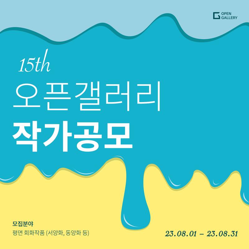 <2023 오픈갤러리 하반기 작가 공모> 오픈갤러리는 더 나은 미술 생태계를 함께 이끌어 나갈 작가님들을 기다리고 있습니다. ▷ 오픈갤러리 소개 https://www.opengallery.co.kr/about/ 1. 모집 분야 *평면 회화 작품* • 서양화, 동양화, 일러스트(원화) 등 • 오픈갤러리는 현재 에디션이 없는 작품만 다루고 있습니다. 2. 지원 대상 • 국내에서 활발히 작품 활동 중인 작가 누구나 3. 공모 기간 • 2023. 08. 01 (화) – 2023. 08. 31 4. 제출 서류 • 포트폴리오 (최소 10점 이상의 작품 이미지 및 정보, 작가노트, 이력 등 포함) • 향후 활동 계획 - 전시 및 작업 계획 등 (*학부 재학생은 필수 제출) 5. 지원 방법 • 하단 구글폼 링크로 지원부탁드립니다. • https://forms.gle/TLuYa8zX3p4QouW69 (인스타그램 @og.curator 프로필 확인) https://www.instagram.com/og.curator/ 6. 선발 결과 발표 • 개별안내 (이메일) 7. 유의 사항 • 제출된 서류는 일절 반환하지 않음. • 모든 제출서류는 기한 내 구글 폼을 통해 제출하여야 하며, 마감기한 경과 시에는 제출이 불가능함. • 허위서류 제출이나 기타 결격사유 발견 시에는 선발이 취소됨. 8. 기타 문의 사항: ㈜오픈갤러리 공모담당자 curator@opengallery.co.kr