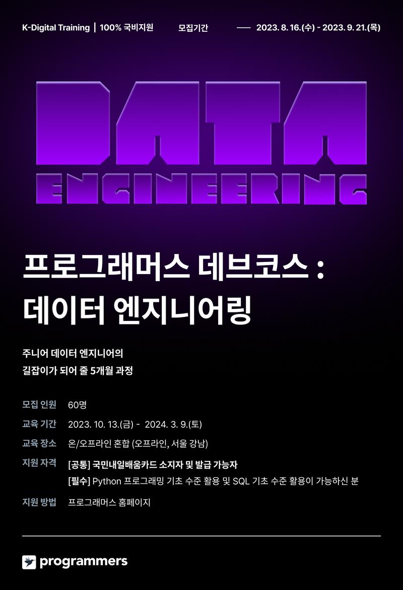 <프로그래머스 데브코스 : 데이터 엔지니어링> 주니어 데이터 엔지니어의 길잡이가 되어 줄 5개월 과정