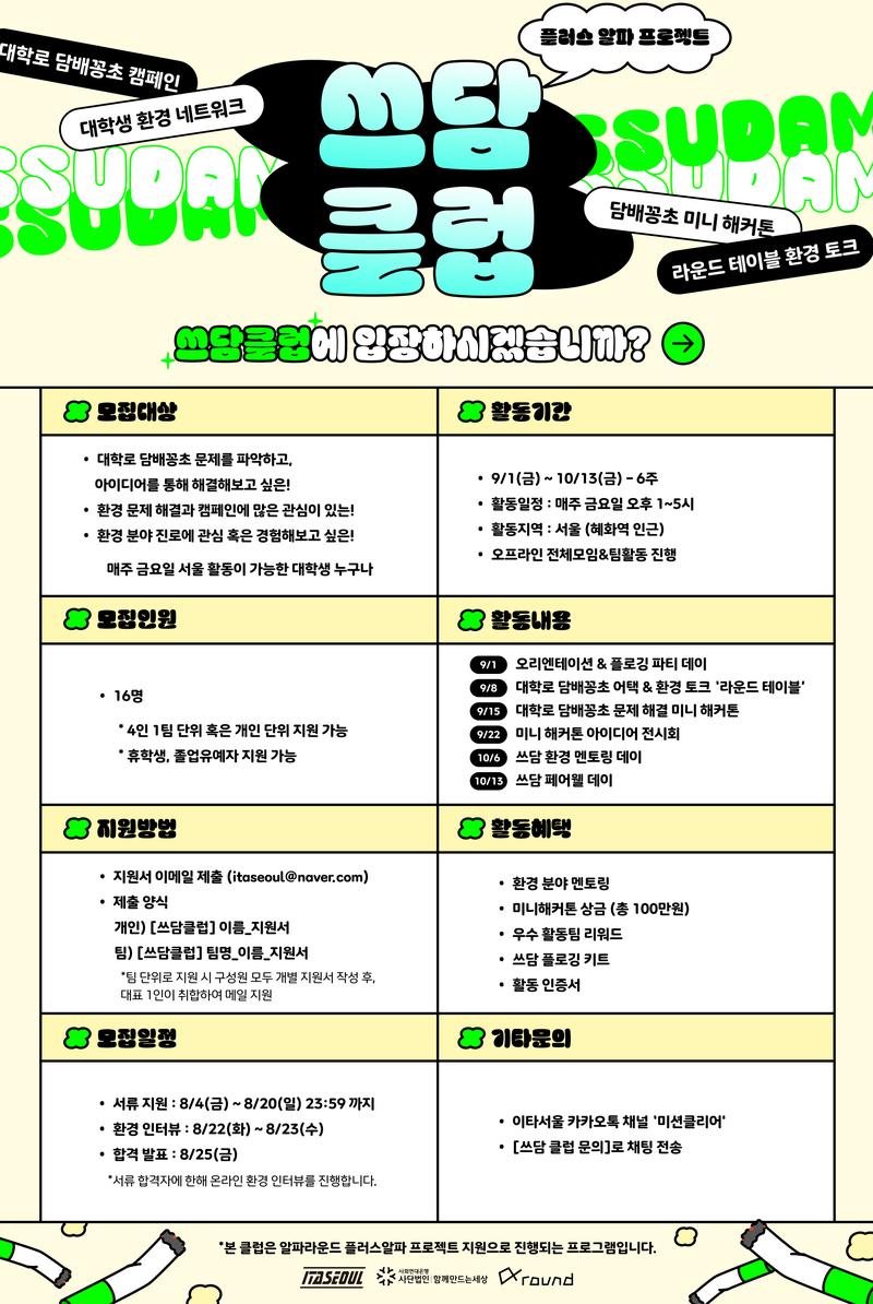 이타서울X알파라운드 “쓰담클럽” 대학생 활동가 모집 (\~8/20)