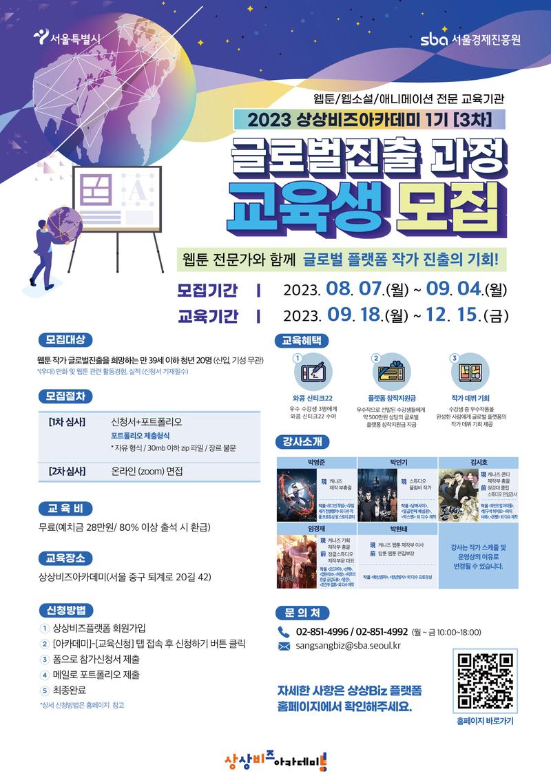 상상비즈아카데미 운영 사무국 ☏02-851-4996 / 02-851-4992 또는 sangsangbiz@sba.seoul.kr