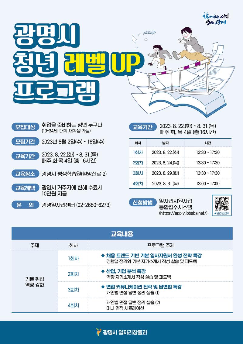 [광명시] 입사지원 서류, 면접 등 맞춤형 취업 코칭 진행 '청년 레벨 UP 프로그램' (대면) (\~8/16, 선착순 모집)