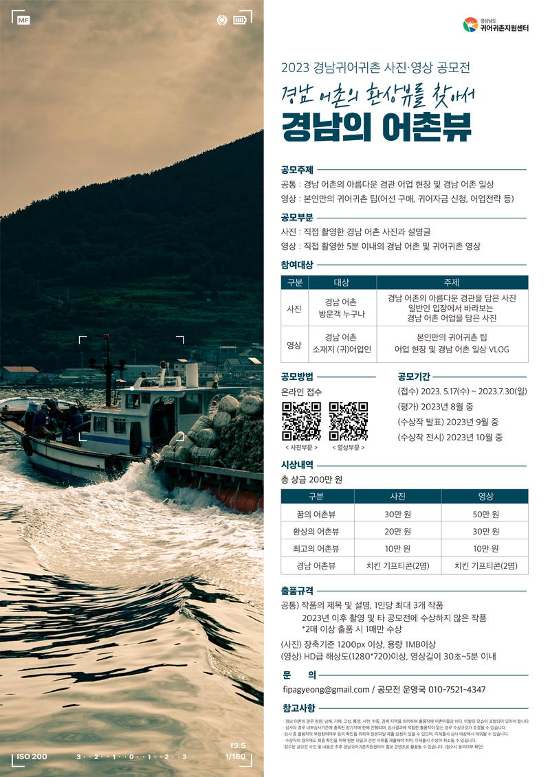 - (공통) 경남 어촌의 아름다운 경관, 어업 현장 및 경남 어촌 일상