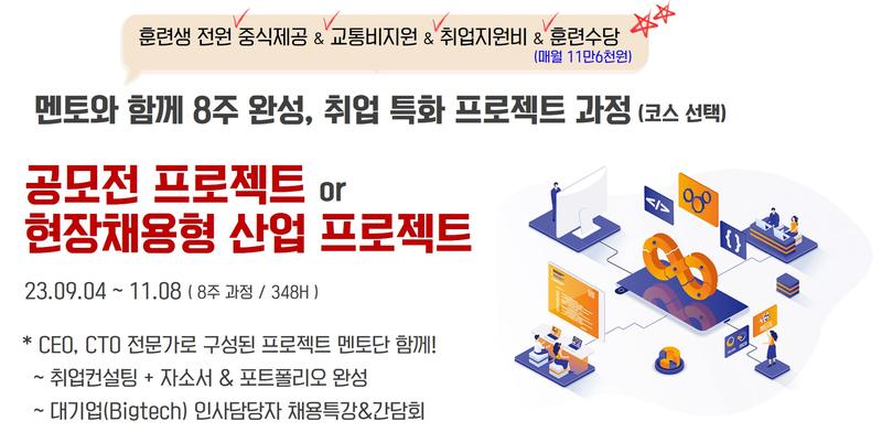 - 2개월(8주) / 2023.09.04 \~ 11.08 / AM 9:30 - PM 6:20
