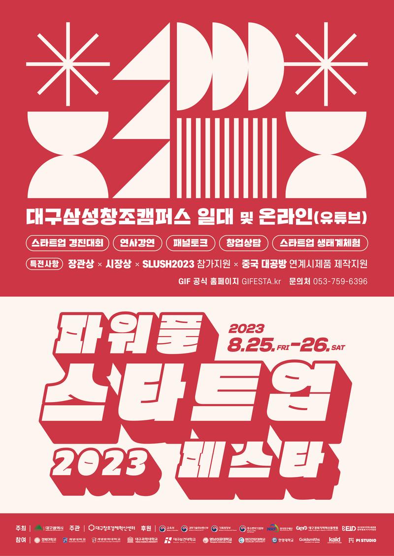 2023 파워풀 스타트업 페스타는 대구에서 가장 큰 규모의 스타트업 행사로서, 벤처·스타트업 기업가, AC(엑셀러레이터)·VC(벤처투자사)뿐 아니라 시민들이 함께 즐길 수 있는 스타트업 축제의 장을 지향합니다.