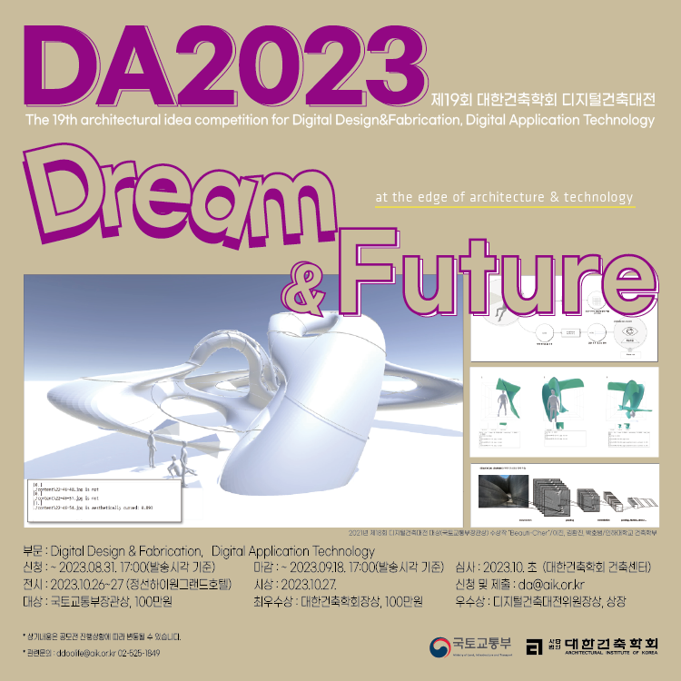 1.1 명 칭 : 2023년 제19회 대한건축학회 디지털건축대전 (Digital Architecture 2023/DA2023)