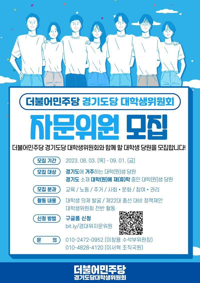 [2023년 더불어민주당 경기도당 대학생위원회 자문위원을 모집합니다!]