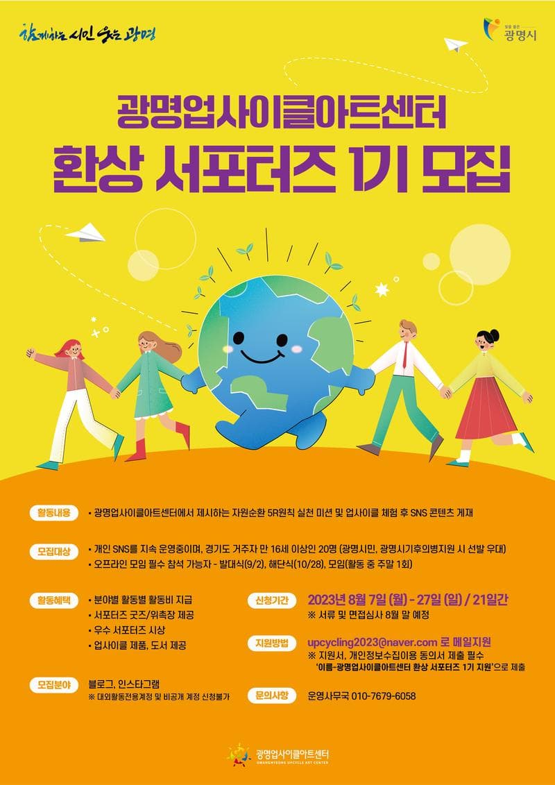 광명업사이클아트센터와 환경 콘텐츠를 만들어 갈 서포터즈를 모집합니다!