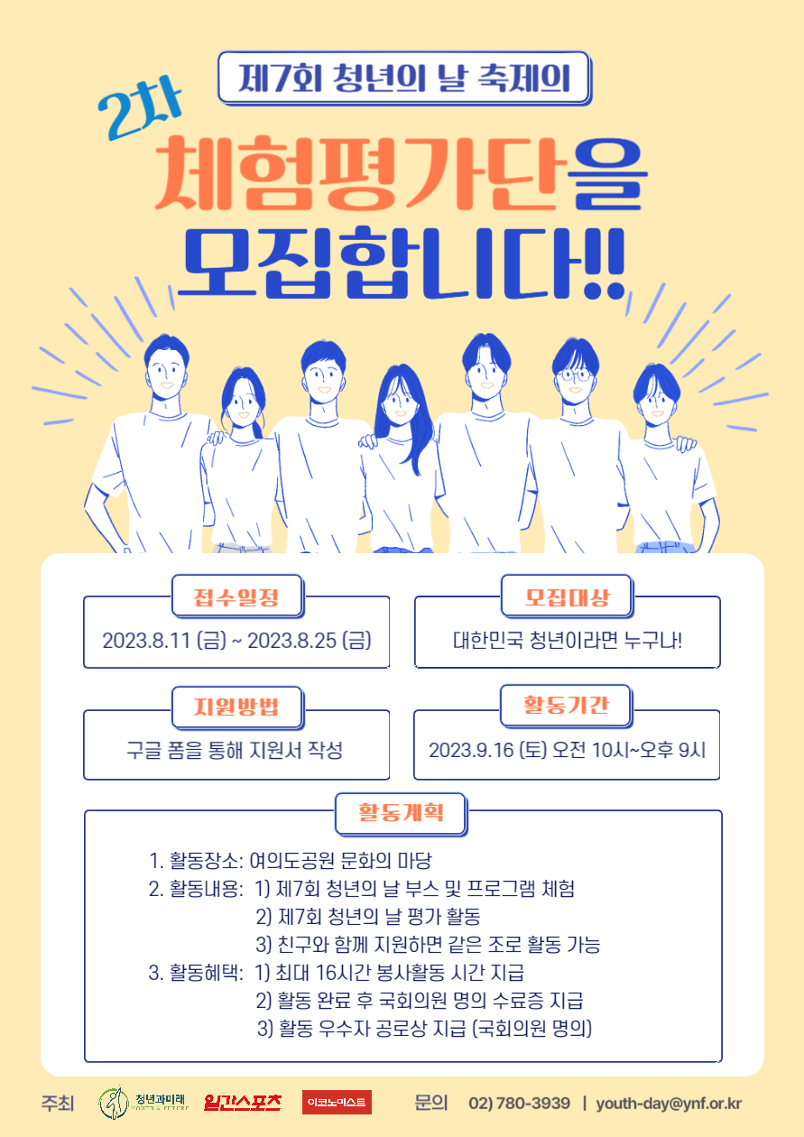 [제7회 대한민국 청년의 날] 체험평가단 2차 모집