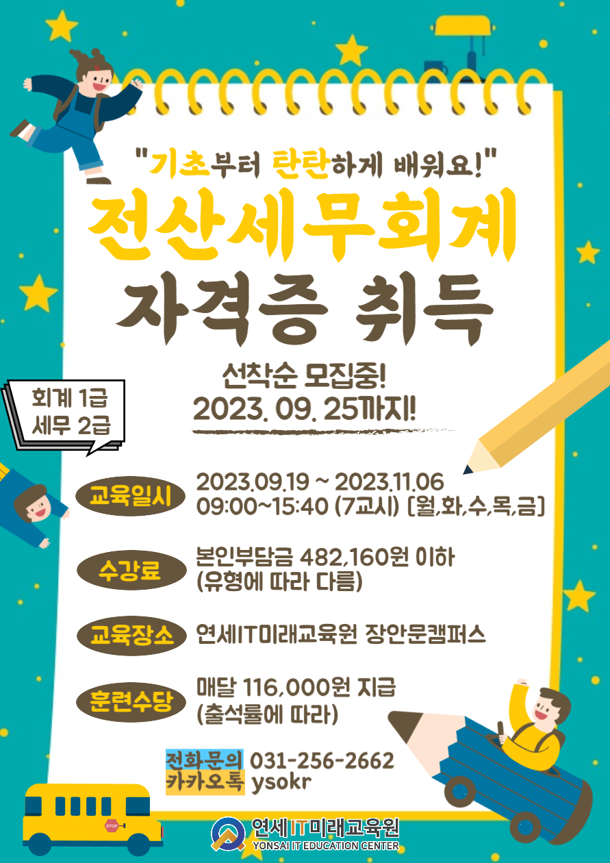전산회계1급, 전산세무2급 자격증 취득 및 실무 교육