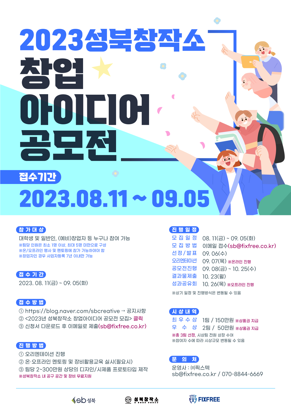 첨부파일-성북 공모전 모집공고 및 신청서 [첨부 1 ] 서류 작성 후 이메일 접수 (sb@fixfree.co.kr)