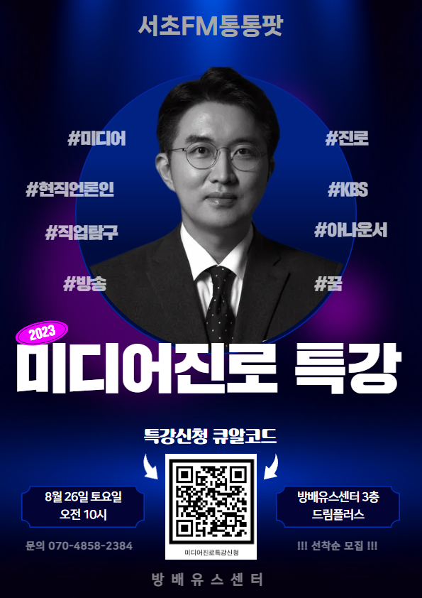 저희 서초구립 방배유스센터에서 운영 중인 동아리에서 활동 중인 청소년들을 대상으로 준비한 미디어 진로 특강에 여러분을 초대합니다\~