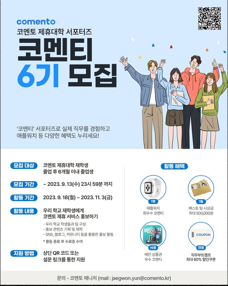 [코멘토] 제휴대학 대학생 서포터즈 "코멘티" 6기 모집