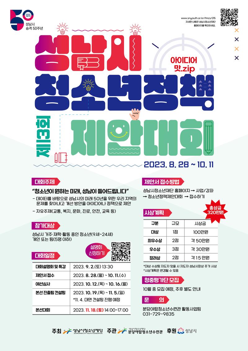 ● 참가 자격 성남시 거주, 재학, 재직, 활동 중인 9\~24세 청소년 및 청년 개인 또는 팀(5인 이하)