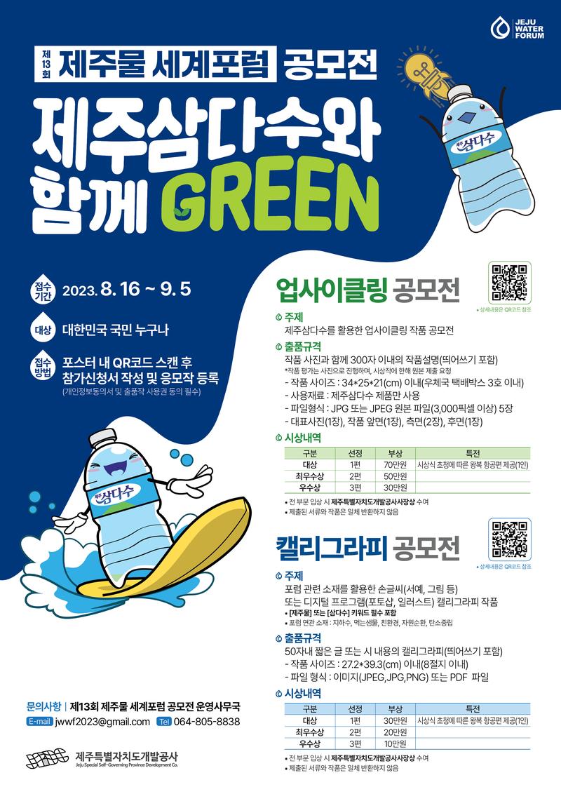 ■ 공모전명 : [제 13회 제주물 세계포럼] 제주삼다수와 함께 Green 공모전