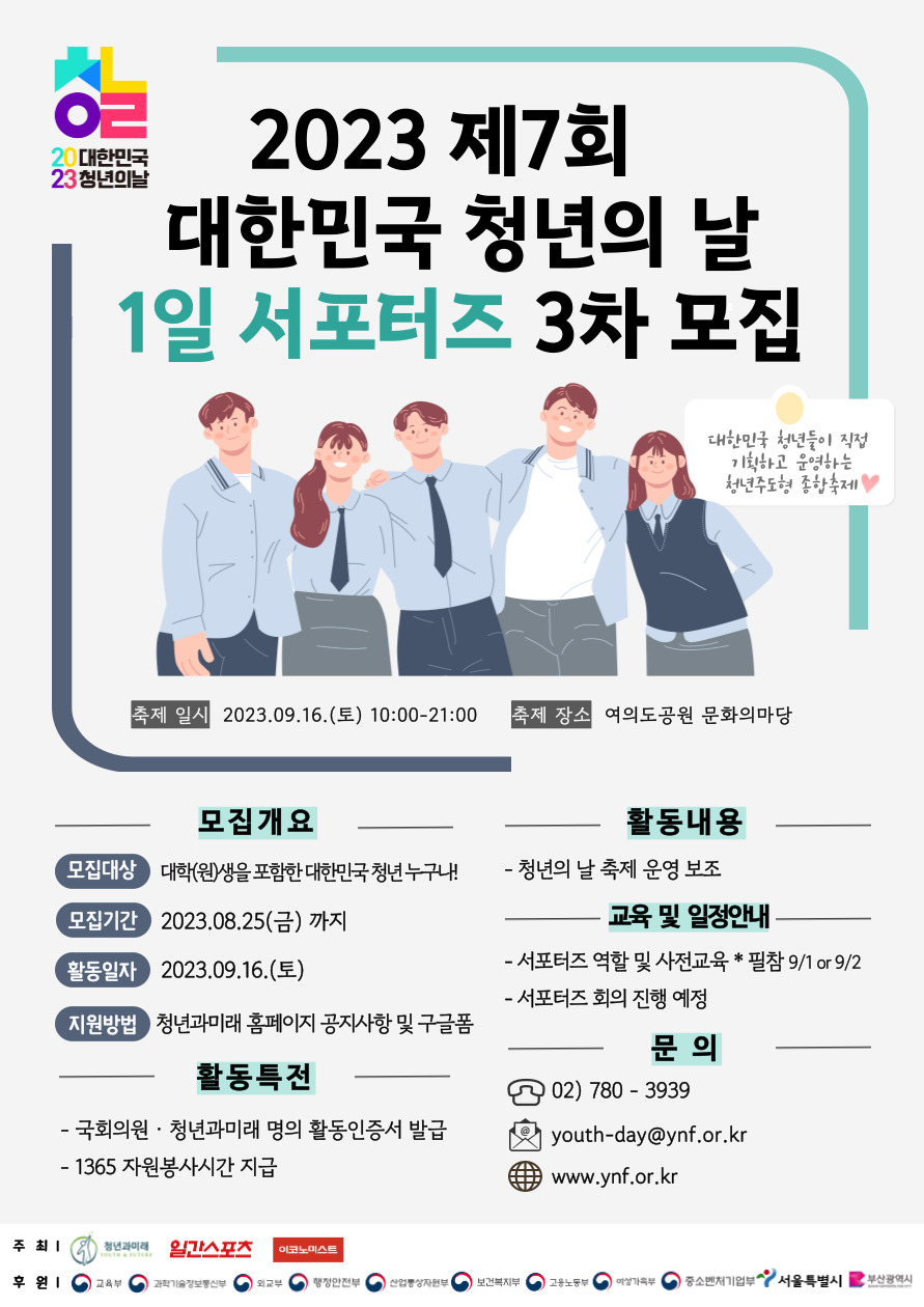 ⭐2023 제7회 청년의 날 1일 서포터즈 모집⭐