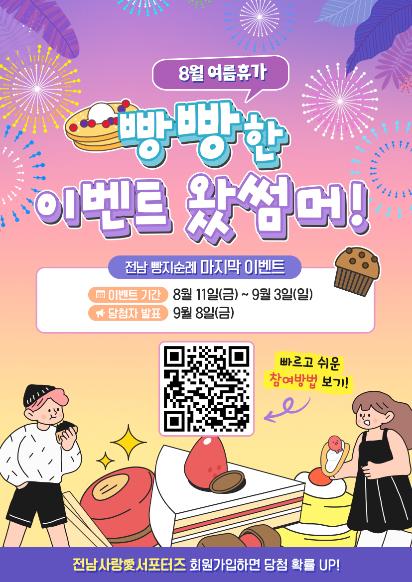 ★ 당첨 확률 UP! 되는 꿀팁 Tip1. 전남사랑愛서포터즈 회원가입 (하단 추천인에 아래와 같이 기입해 주세요!) ※ 추천인 : 전남도청 / 농식품유통과 / 빵담당자 Tip2. 더 많은 빵집 방문해서 인증하면 당첨 확률 대폭 UP!