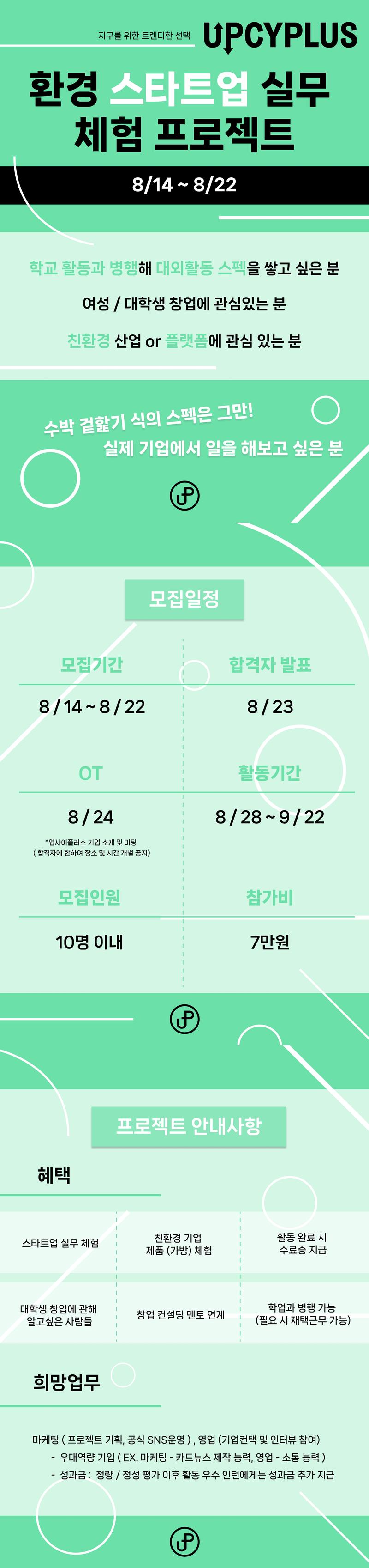 대학생 스타트업에 대한 이야기부터 마케팅/기획/영업 전반에 대한 실무 경험, 또한 창업 컨설팅 연계까지 이어지는 이 프로젝트는 해당 직무를 희망하시는 분들께 큰 힘이 될 것입니다.