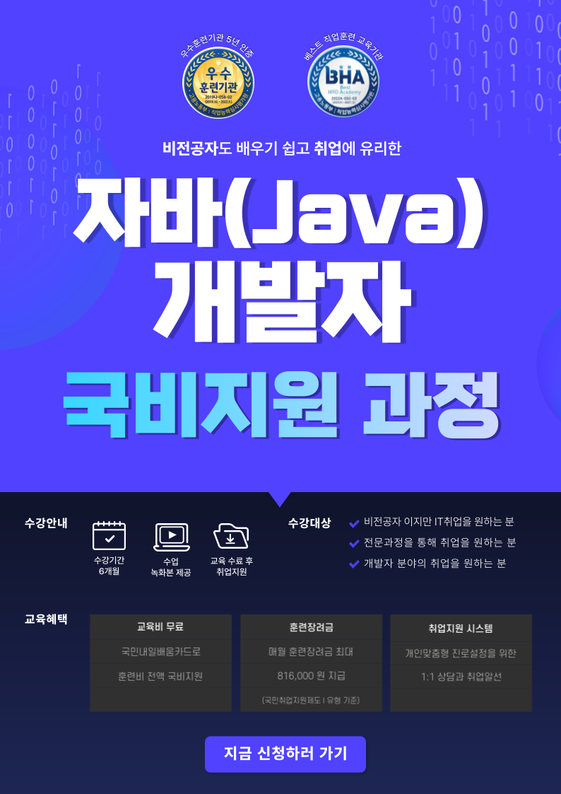 비전공자 개발자 국비지원 과정 모집 중! 100%무료! 취업률 96%!