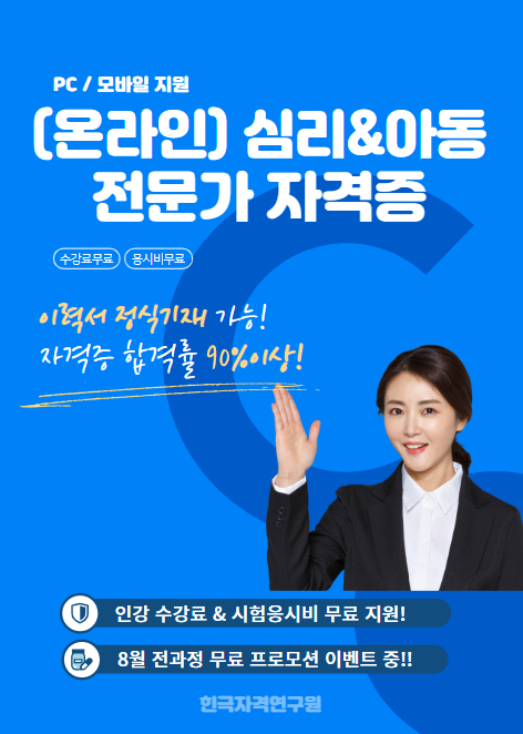 심리상담사 & 아동복지 자격증 무료 인강 수강생 모집