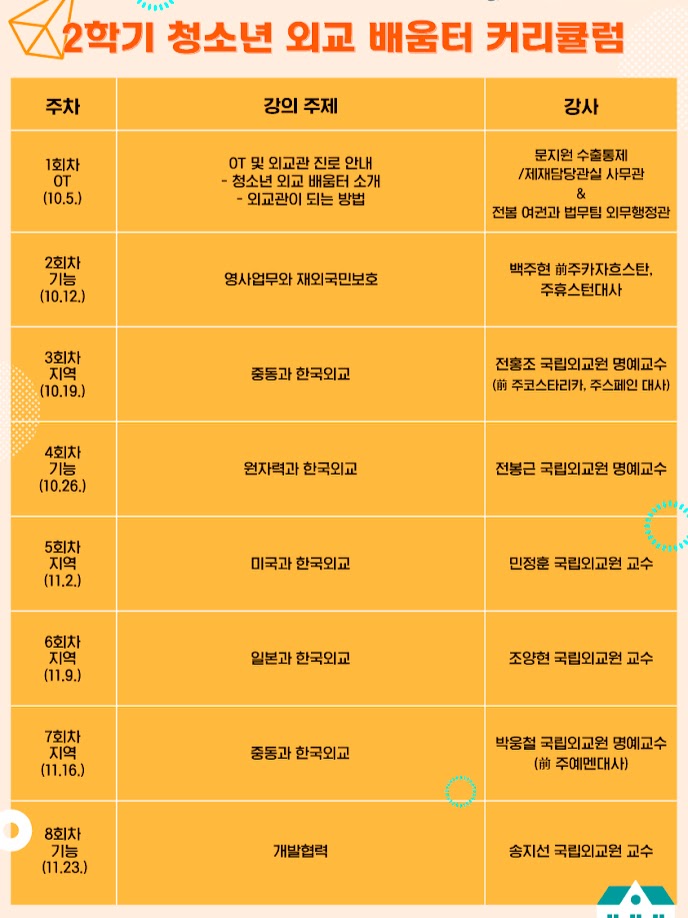 2023년 2학기 「청소년 외교 배움터」 수강생 모집(마감 9.3.(일) 23:59)