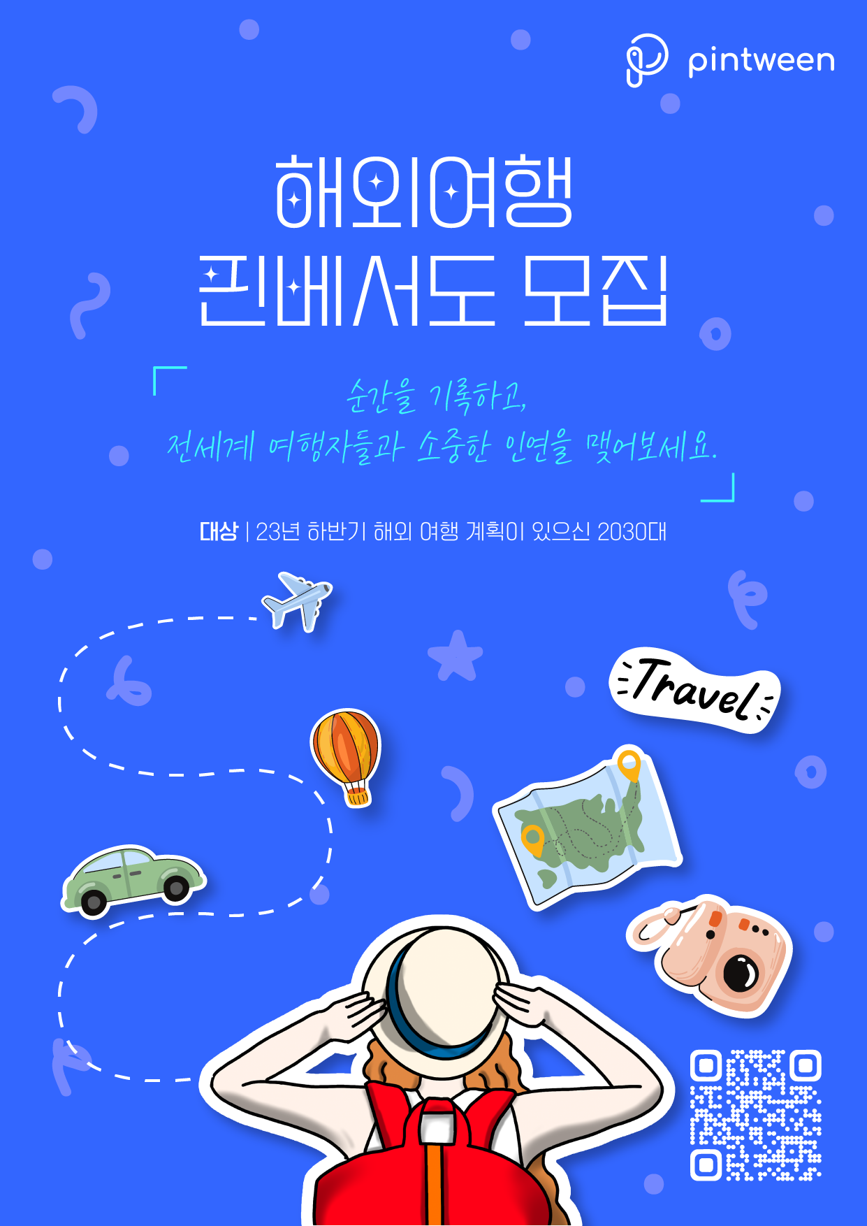핀베서도(핀트윈 + 엠베서도)란? 해외 자유여행에 진심인 사람들입니다. 여행 중에 만난 이들에게 핀트윈 앱을 적극 소개하기도 하고 앱을 통해 나만큼이나 찐 여행 매니아들을 만나며 우리들의 네트워크를 만들어 갑니다.