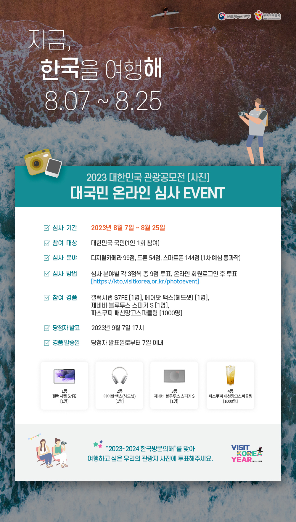 2023 대한민국 관광공모전 [사진]부문 국민심사 “2023\~2024한국방문의해”를 맞아, 여행하고 싶은 우리의 관광지 사진에 투표해주세요.
