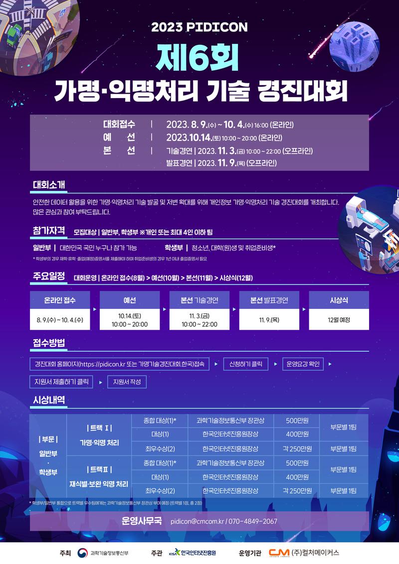 [과학기술정보통신부 주최/한국인터넷진흥원 주관] 제6회 가명익명처리 기술 경진대회