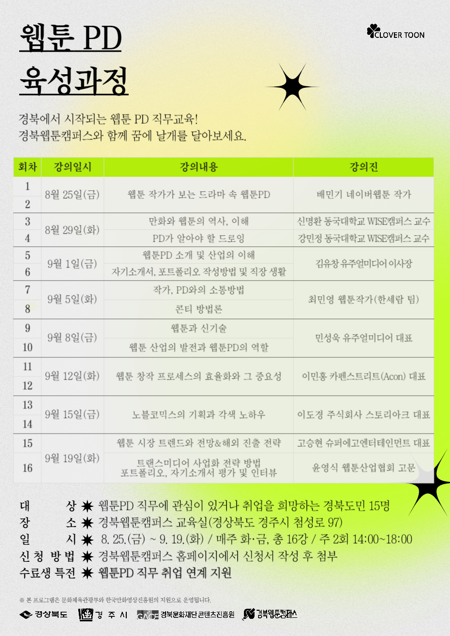 경북웹툰캠퍼스, 클로버툰, 경상북도, 경주시, 경북문화재단 콘텐츠진흥원