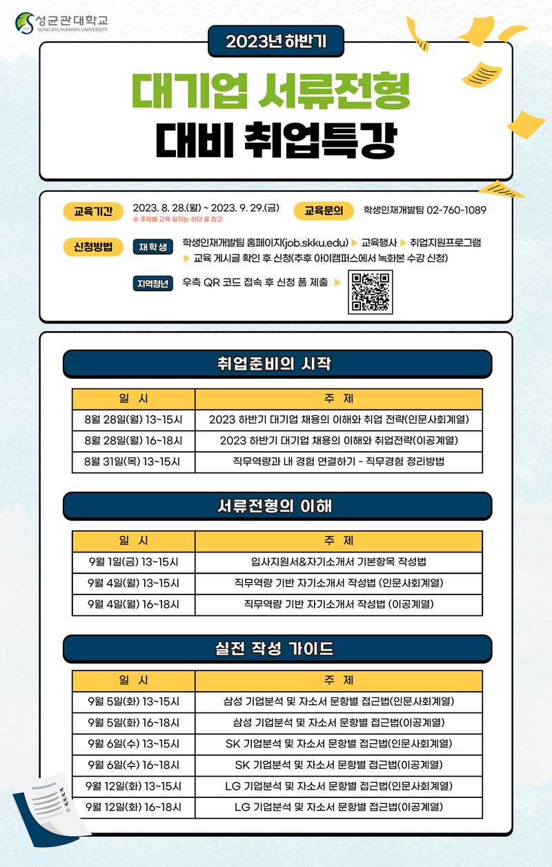 [성균관대학교] 「2023 하반기 대기업 서류전형 대비 취업특강 프로그램(온라인)」 지역청년 참여자 모집(8/28 \~9/12中)
