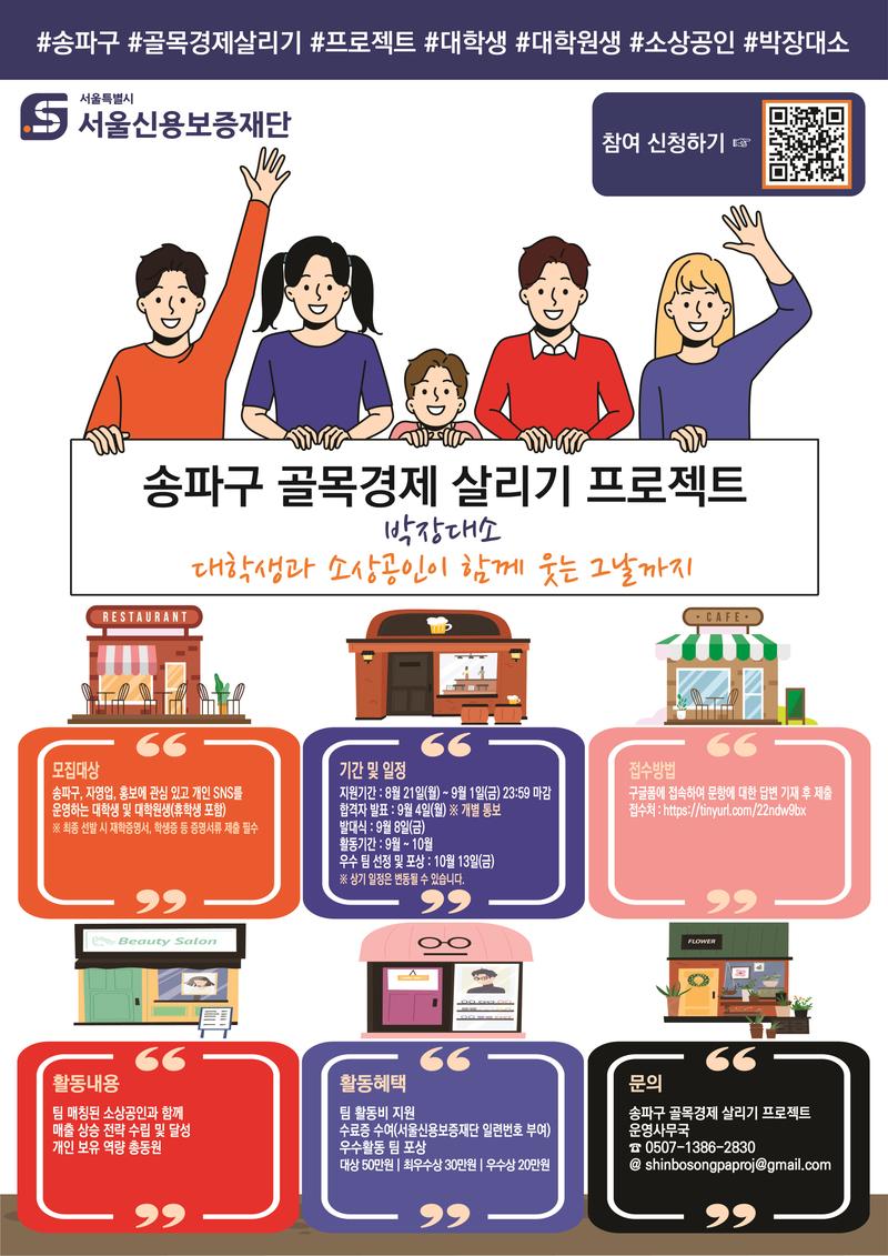 송파구 골목경제 살리기 프로젝트 운영사무국으로 연락주세요.