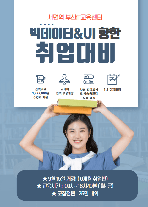 - 교육기관 위치: 서면역 도보30초, 부산IT교육센터