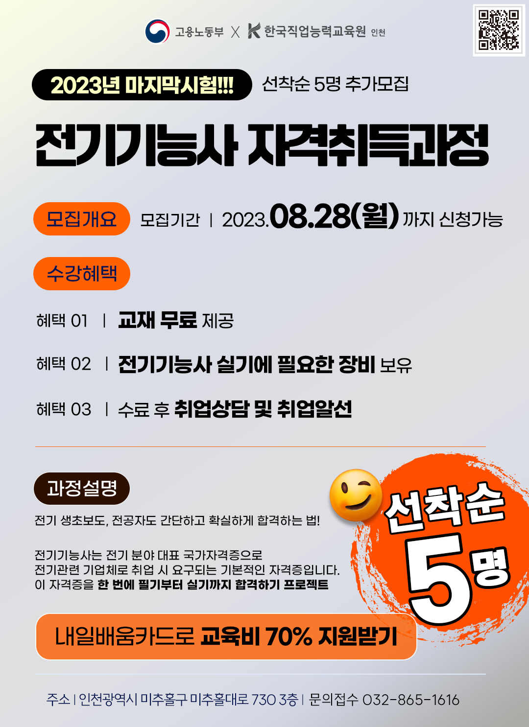 ⚡2023년 마지막!⚡전기기능사 자격취득과정🧡 국민내일배움카드로 교육비 70% 지원받고 교육듣자!🏃♂️🏃♂️🏃♂️ 전기생초보도 간단하고 확실하게 합격할 수 있는 교육과정 (이제 선착순 5명 남았다구요!)