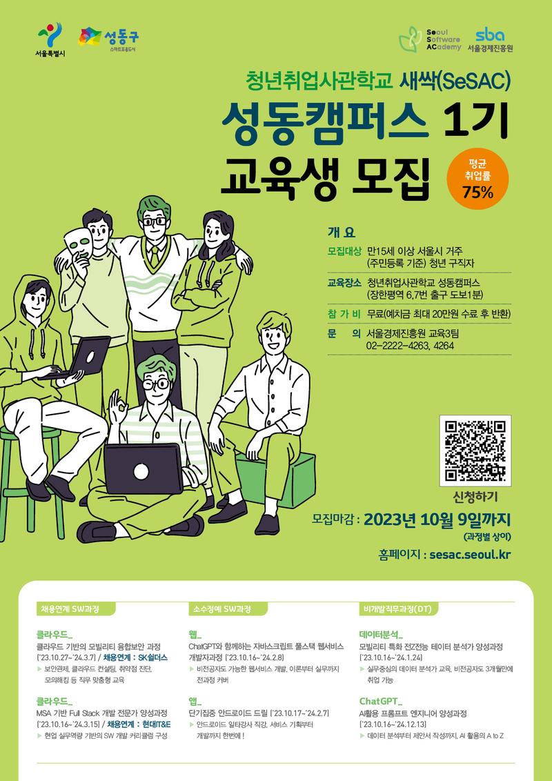 6. 교육 장소: 청년취업사관학교(SeSAC) 성동 캠퍼스 - 위 치 : 서울시 성동구 자동차시장1길 64