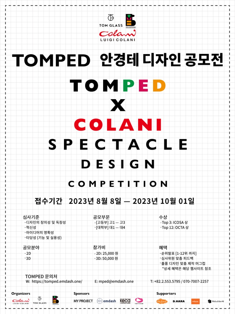 자세한 사항은 TOMPED 안경테 디자인 공모전 홈페이지 (https://tomped.emdash.one/) 에서 확인할 수 있다.