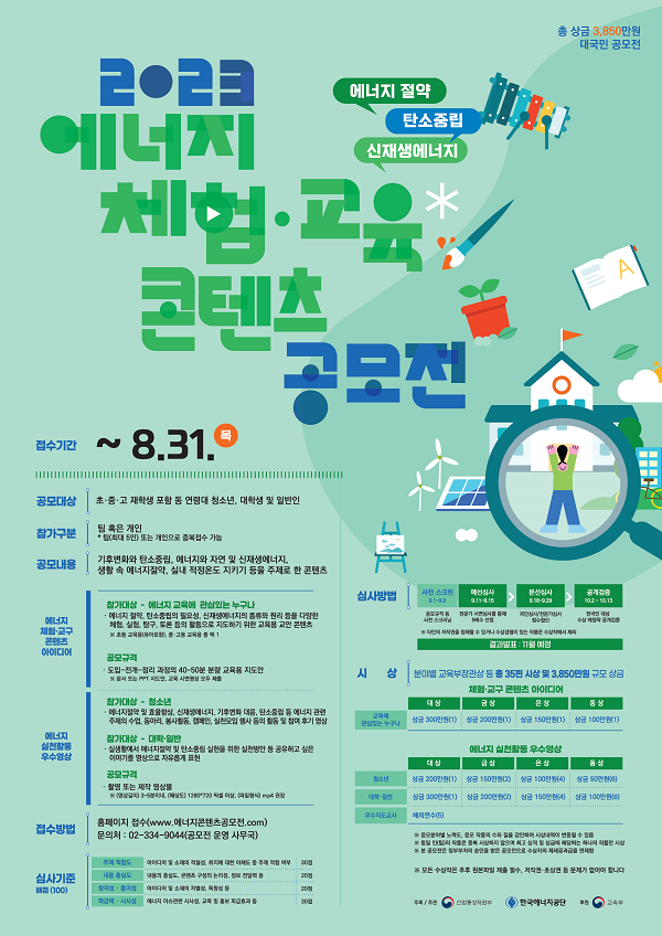 2023년 에너지 체험·교육 콘텐츠 공모전 (마감임박 / 우수영상분야)
