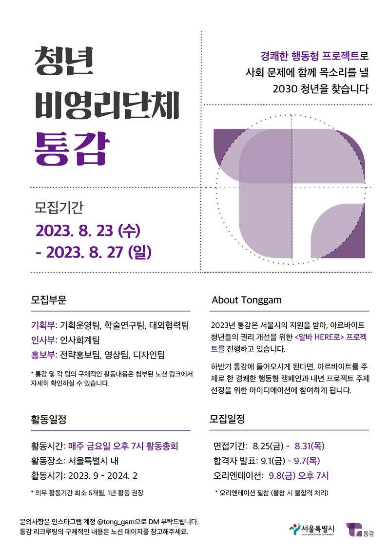 [🔥기간연장🔥]서울시 청년 비영리단체 통감의 새로운 팀원을 모집합니다!