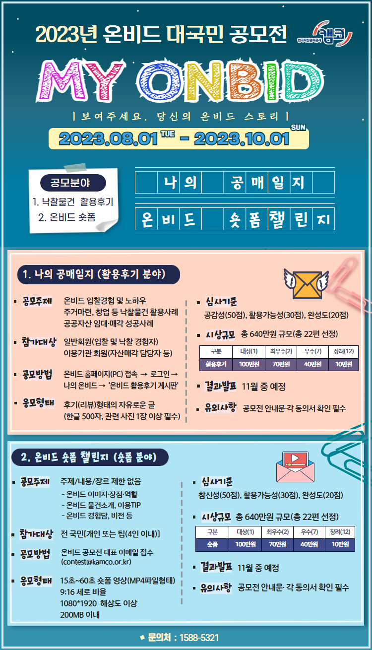 2) 온비드 숏폼 - 주제/내용/장르 제한 없음 - (예시) 온비드 이미지·장점·역할/물건소개/온비드 경험담·비전/이용Tip