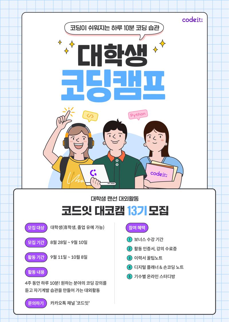 대학생 코딩 대외활동! 대학생 코딩 캠프 대코캠 13기 모집