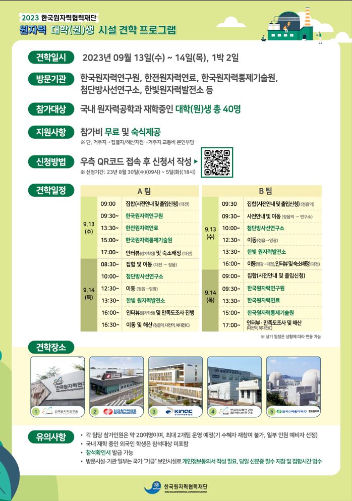 방문기관 : 한국원자력연구원, 한전원자력연료, 한국원자력통제기술원, 첨단방사선연구소, 한빛원자력발전소 등