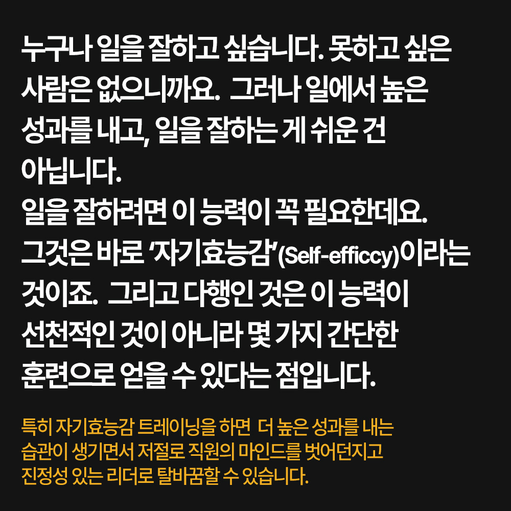자기효능감 개선을 위한 트레이닝 비법이 궁금하신가요?