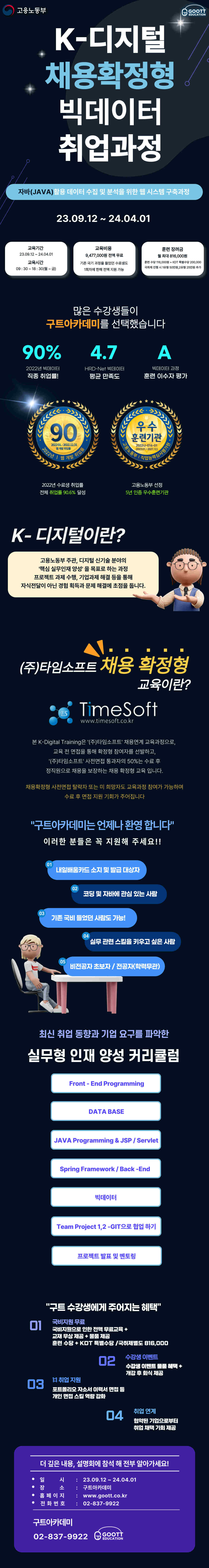 ▶교육 기간 2023.09. 12~ 24.04.01 (125일 총1,000시간) / 월~금 9:30~18:30