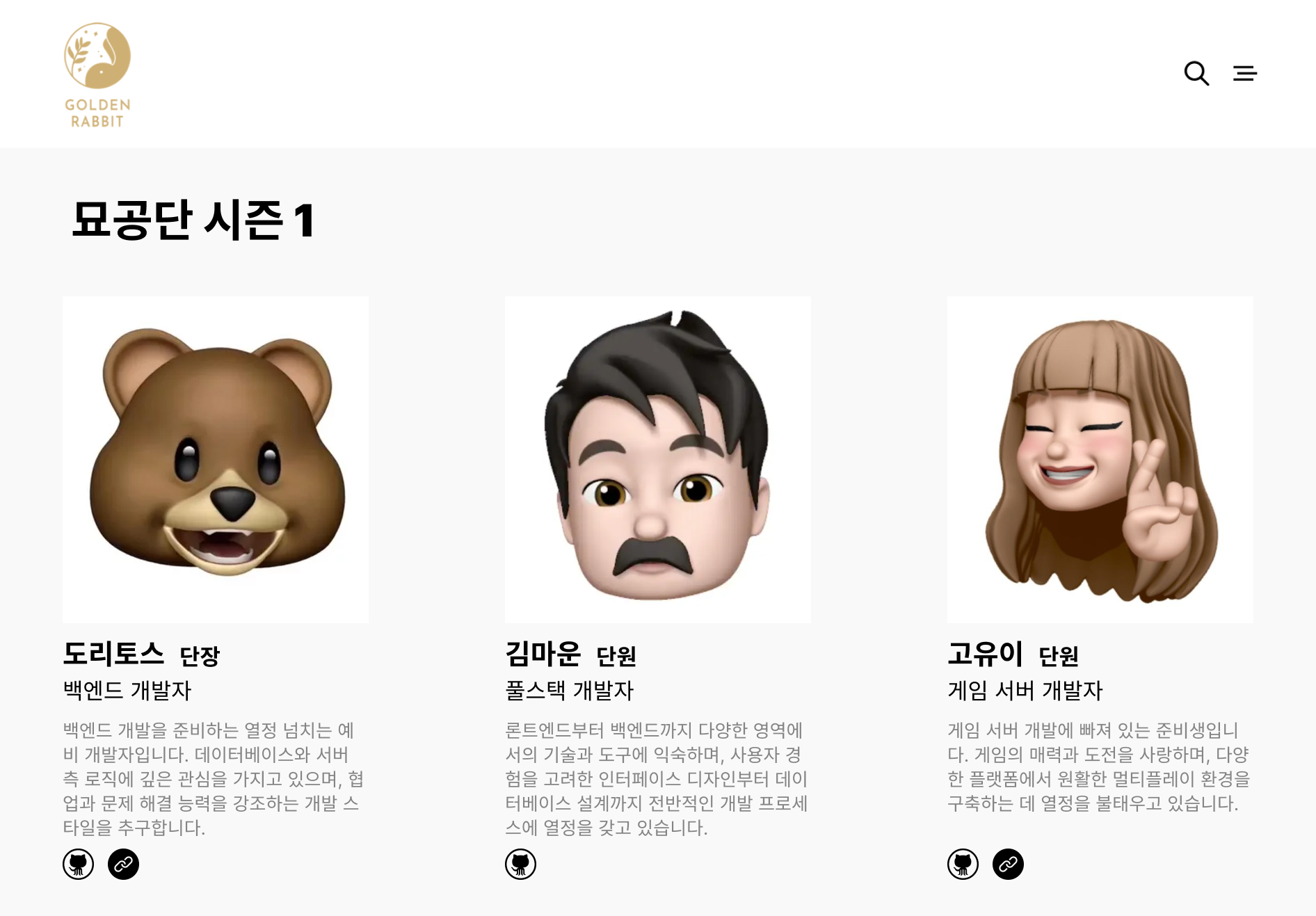 또한, 묘공전당이라는 이름의 묘공단만을 위한 디렉토리 페이지를 마련하여 프로필, 블로그, 포트폴리오, 이력서 등 정보를 지속적으로 골든래빗 홈페이지에 노출할 수 있도록 도움을 드리고자 합니다. 부디 스터디에 적극적으로 참여해 주신다면 앞으로 더 빛날 커리어에 보탬될 것입니다.
