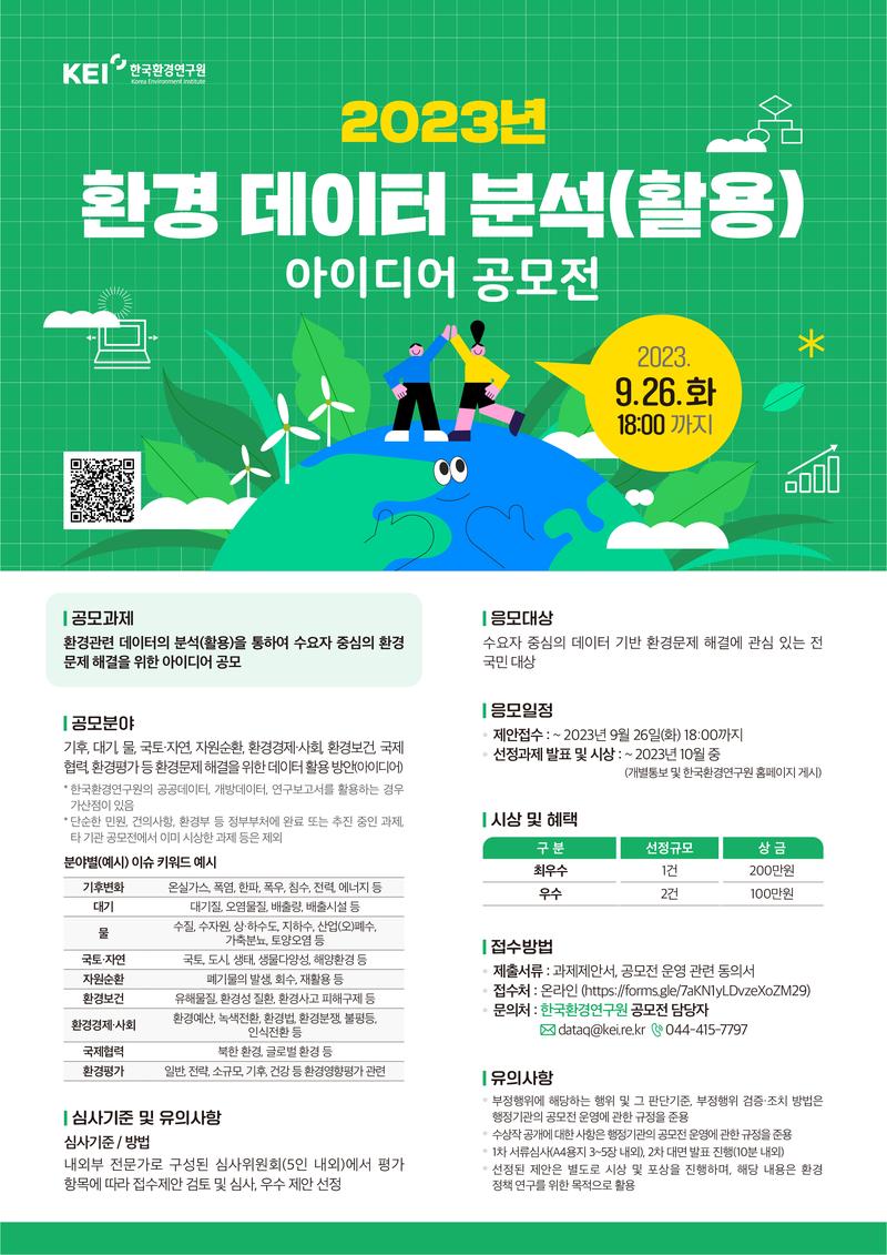 문의처: 한국환경연구원 공모전 담당자 044-415-7797 / dataq@kei.re.kr