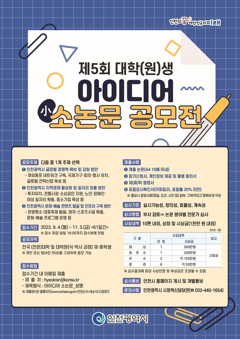 <제5회 대학(원)생 아이디어 소논문 공모전>