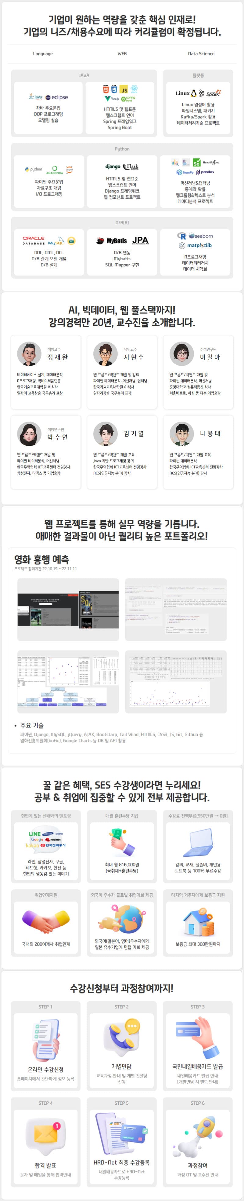 - 교육일정: 2023년 10월16일(월) ~ 2024년 5월24일(금), (8개월, 989시간)