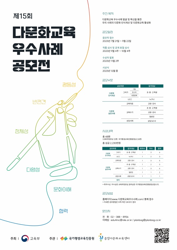 '제 15회 다문화교육 우수사례 공모전'을 개최하오니