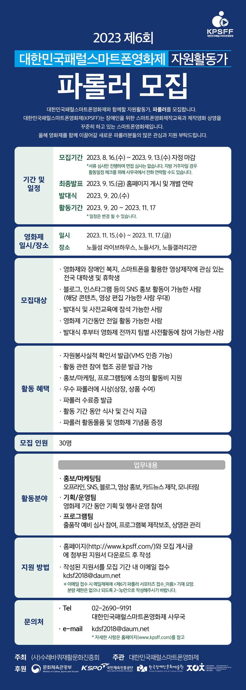 ∙ tel : 02-2690-9191 (대한민국패럴스마트폰영화제 사무국)
