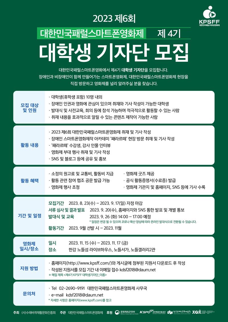 ※ 메일 제목 <제4기 KPSFF 대학생기자단_이름>
