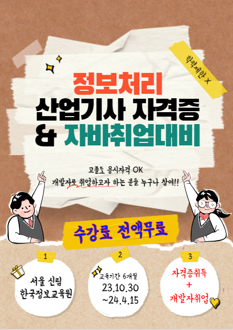 - 신림 정보처리산업기사 자격증 취득 취업대비 교육생 모집